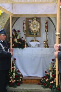 Procesja eucharystyczna do czterech ołtarzy zbudowanych na trasie powstała nieco później niż samo święto. Pierwsze wzmianki o jej istnieniu pochodzą z Niemiec, z Kolonii – XIV wiek. Jaki jest cel procesji Bożego Ciała? „W procesjach, w czasie których celebrans niesie Najświętszą Eucharystię poza kościół wśród uroczystych obrzędów i śpiewów, lud chrześcijański składa publiczne świadectwo swej wiary i pobożności wobec Najświętszego Sakramentu” (Komunia św. i kult tajemnicy eucharystycznej poza Mszą dostosowane do zwyczajów polskich, nr 77).
