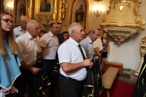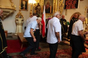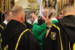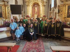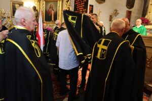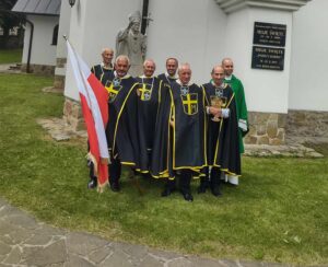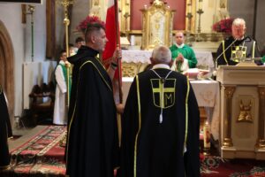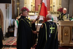 Brat Jacek Skoczeń po zakończonym obrzędzie przyjęcia nowych Braci do Zakonu odczytał Dekret o utworzeniu Chorągwi pw. Znalezienia Krzyża Świętego w naszej parafii i przekazał go na ręce Księdza Kapelana. Ostatnim elementem uroczystości było przekazanie sztandaru narodowego.