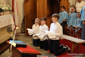W niedzielę 22 czerwca podczas Mszy Świętej o godzinie 11.00 sześciu chłopców zostało przyjętych do grona kandydatów na ministrantów. Uroczystości przewodniczył Ks. prof. Józef Młyński nasz Rodak.