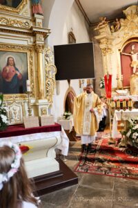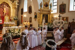 14 maja podczas Mszy Świętej o godz. 11:00 uczniowie klas trzecich Szkoły Podstawowej w Nowym Rybiu i Szkoły Podstawowej w Rupniowie przyjęli po raz pierwszy w Komunii Świętej Pana Jezusa.