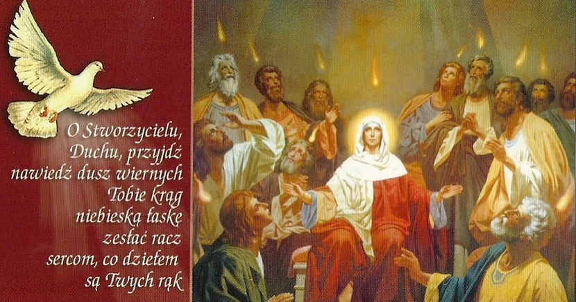 1. Uroczystość Zesłania Ducha Św. – Msze święte: w kościele parafialnym – o godz. 7.00, 8.45, 11.00 i 16.00;